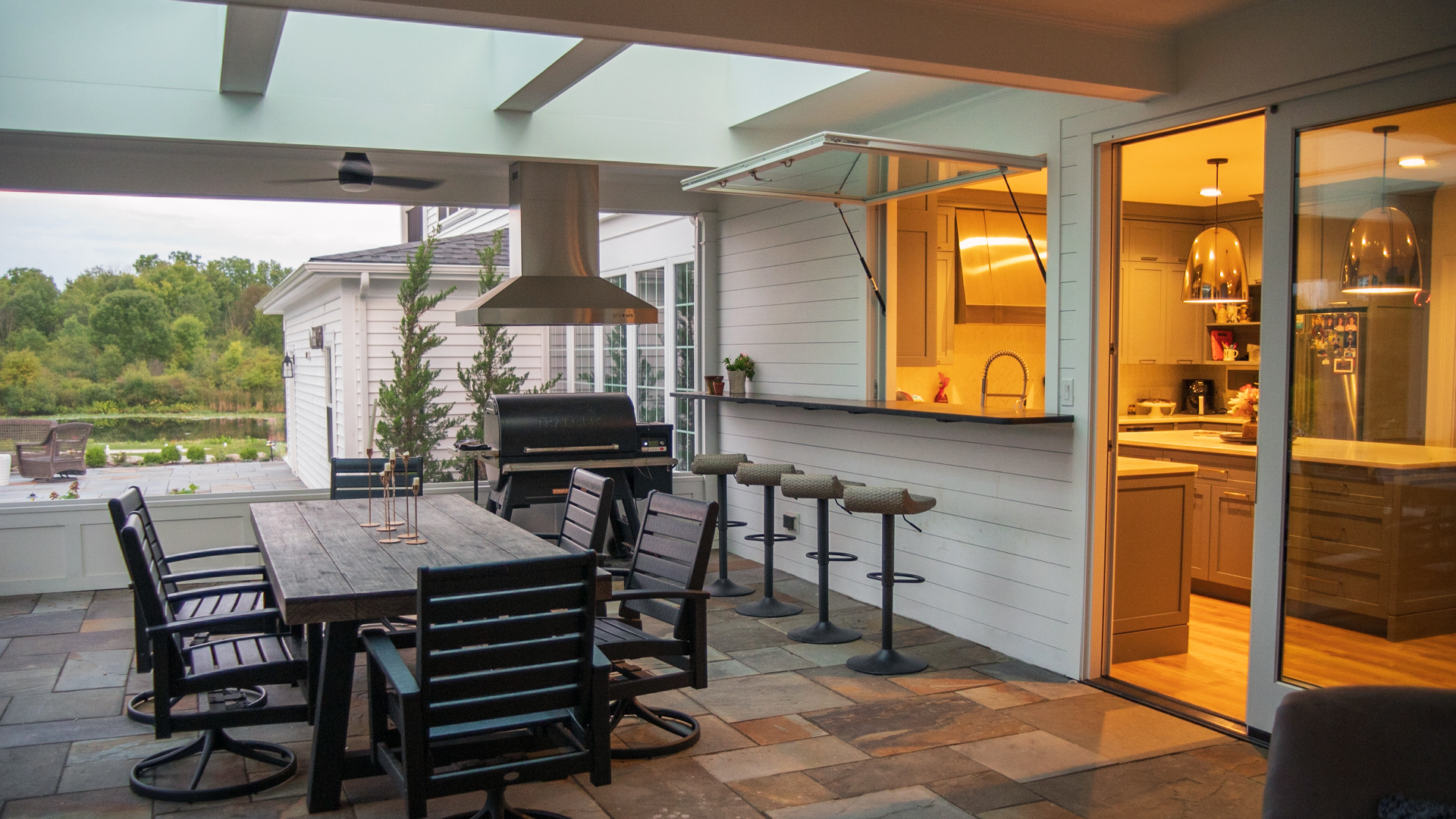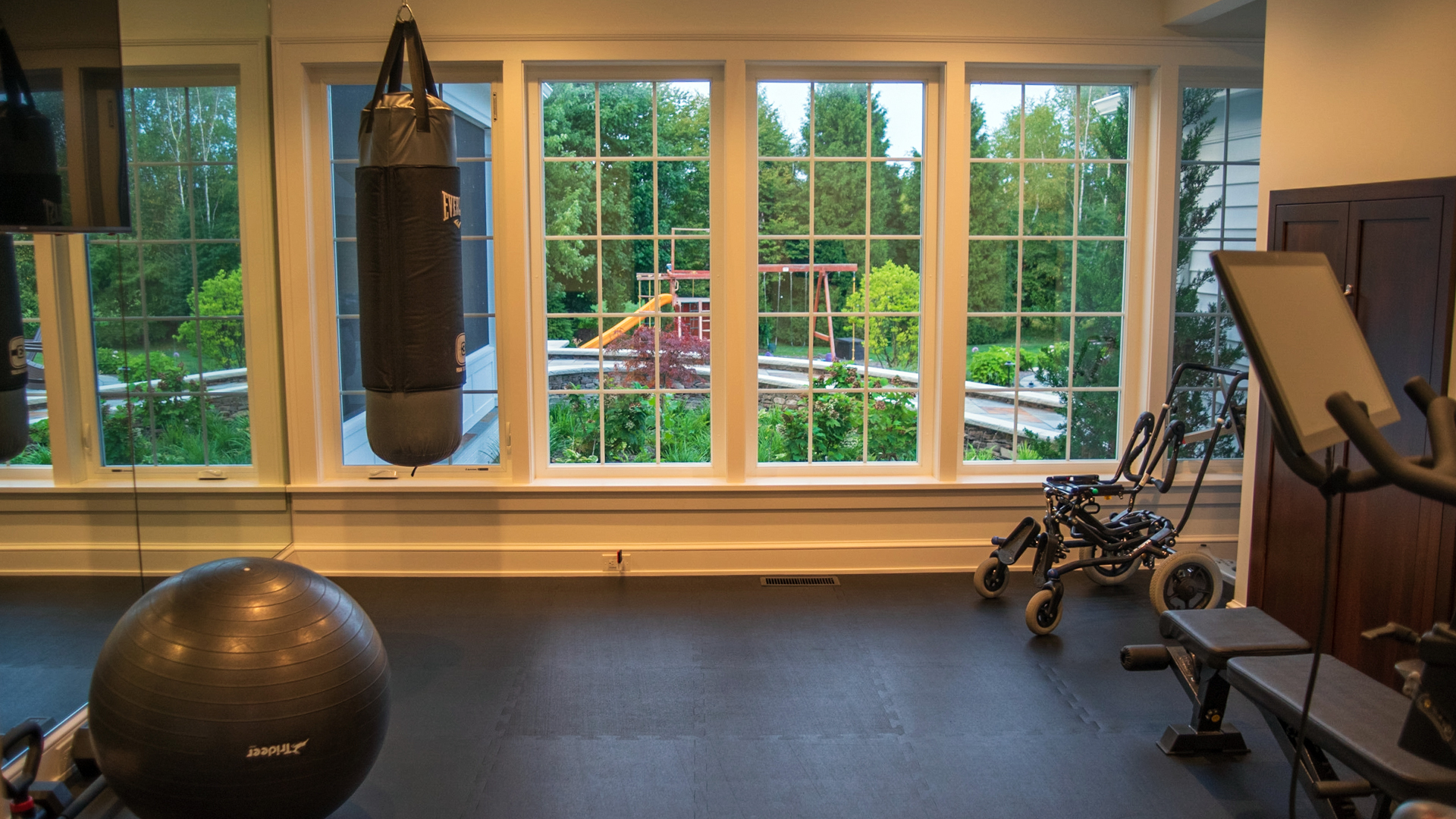 On the main floor, a new garage fits a 7-person van, alongside a mudroom, fitness/therapy room, and an inviting screened porch. Skylights and a curbless NanaWall open the kitchen to the outdoors, while a butler’s pantry improves flow and adds storage – eliminating the need for further kitchen renovations.